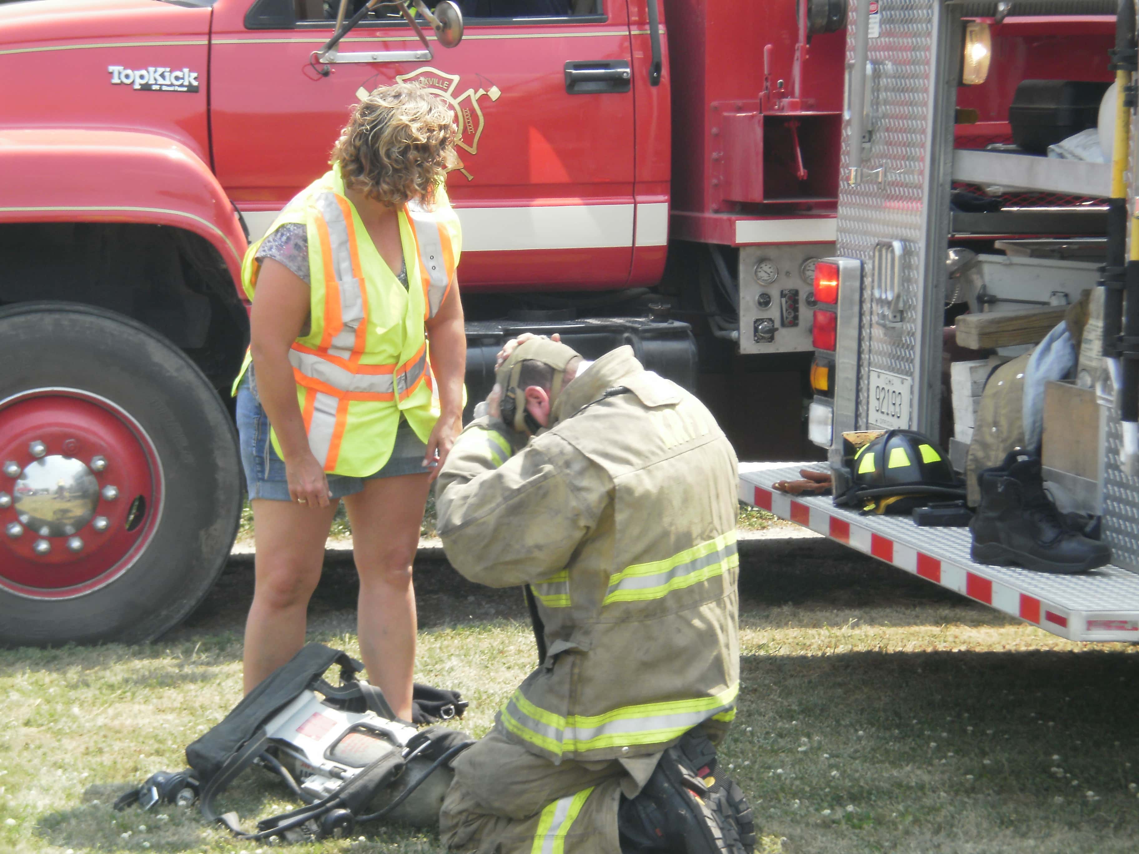 Along with fire crews from across the county, the Pella Ambulance responded to the house fire, and brought along their recently acquired cooling equipment. The biggest addition to this cooling equipment is a misting tent, which the firefighters recovered under as the rotated in and out of fighting the fire. The ambulance crews were very active at the fire scene, bringing special towels meant to cool the firefighters down, along with bottles of water to keep them hydrated. This was the first time the misting tent has been used since it was purchased, and the firefighters using it say it works great.