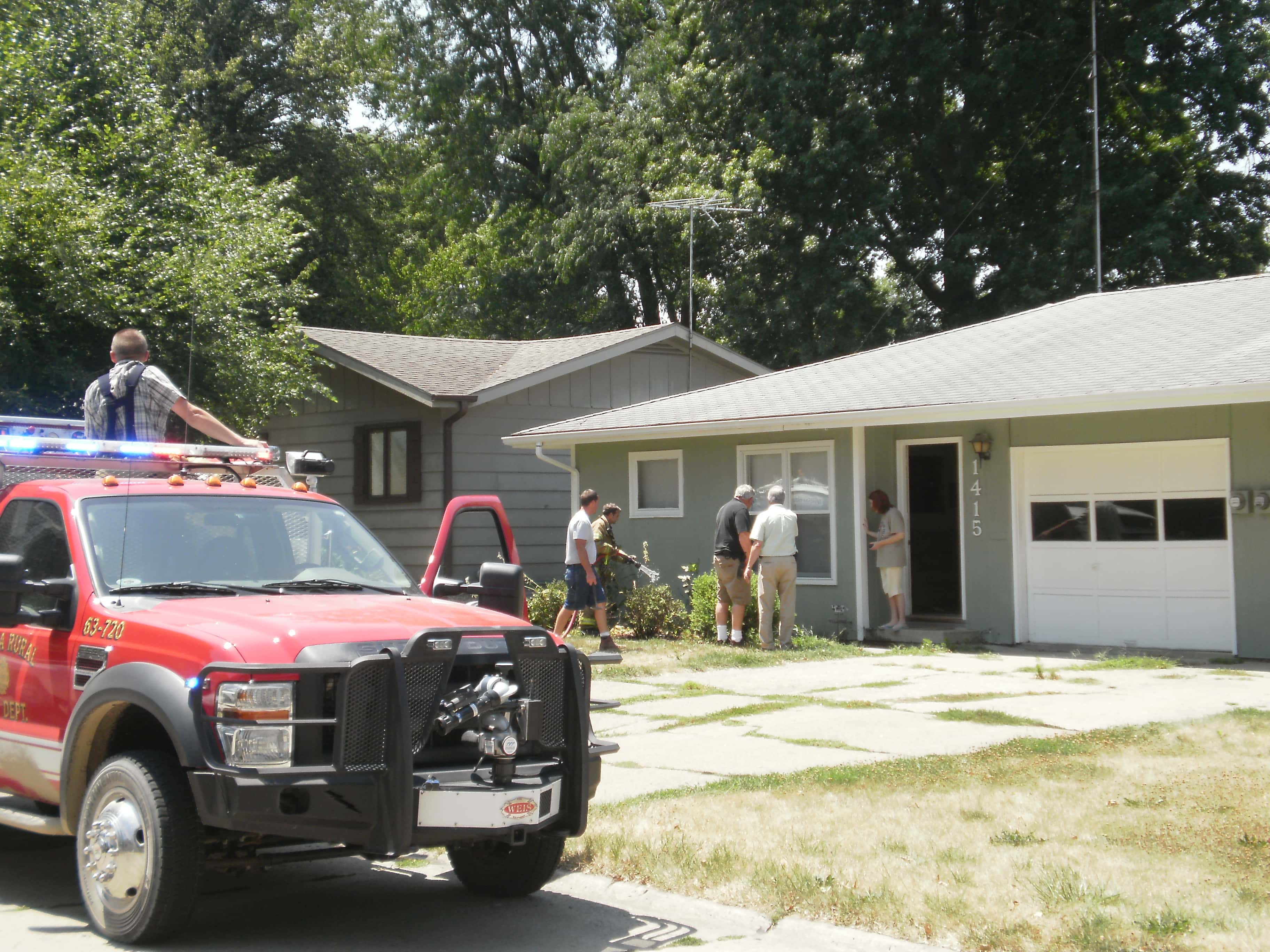 The Pella Fire Department responded to reports of a grass fire that was making its way towards a home around 12:45 Wednesday afternoon. The fire, on Country Club Road in Pella, next to the Pella Golf and Country club, turned out to be nothing major. Part of the homes garden was smoldering and smoking. The Pella Fire Department put water down on the garden until it stopped smoking. The Pella Fire Department and Pella Ambulance responded to the scene.