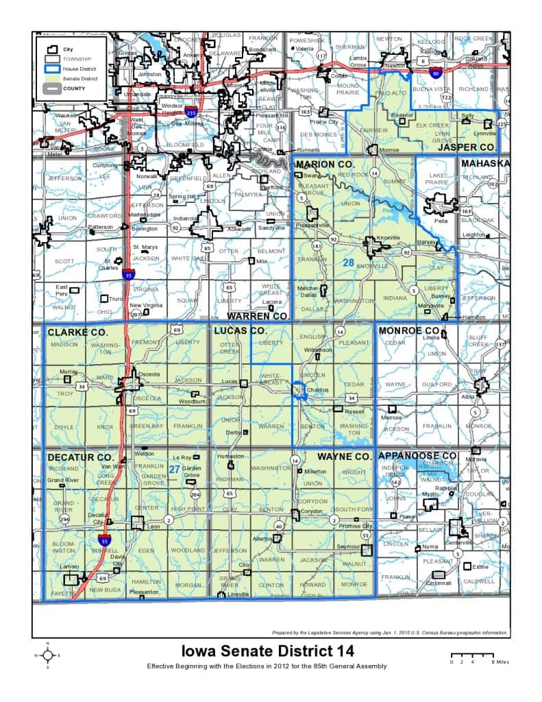 Knoxville and the surrounding Knoxville Township alone have almost 7700 registered voters. That itself is more than the other counties in the districts, which include Lucas, Decatur, Clarke, Wayne, and a southern part of Jasper.