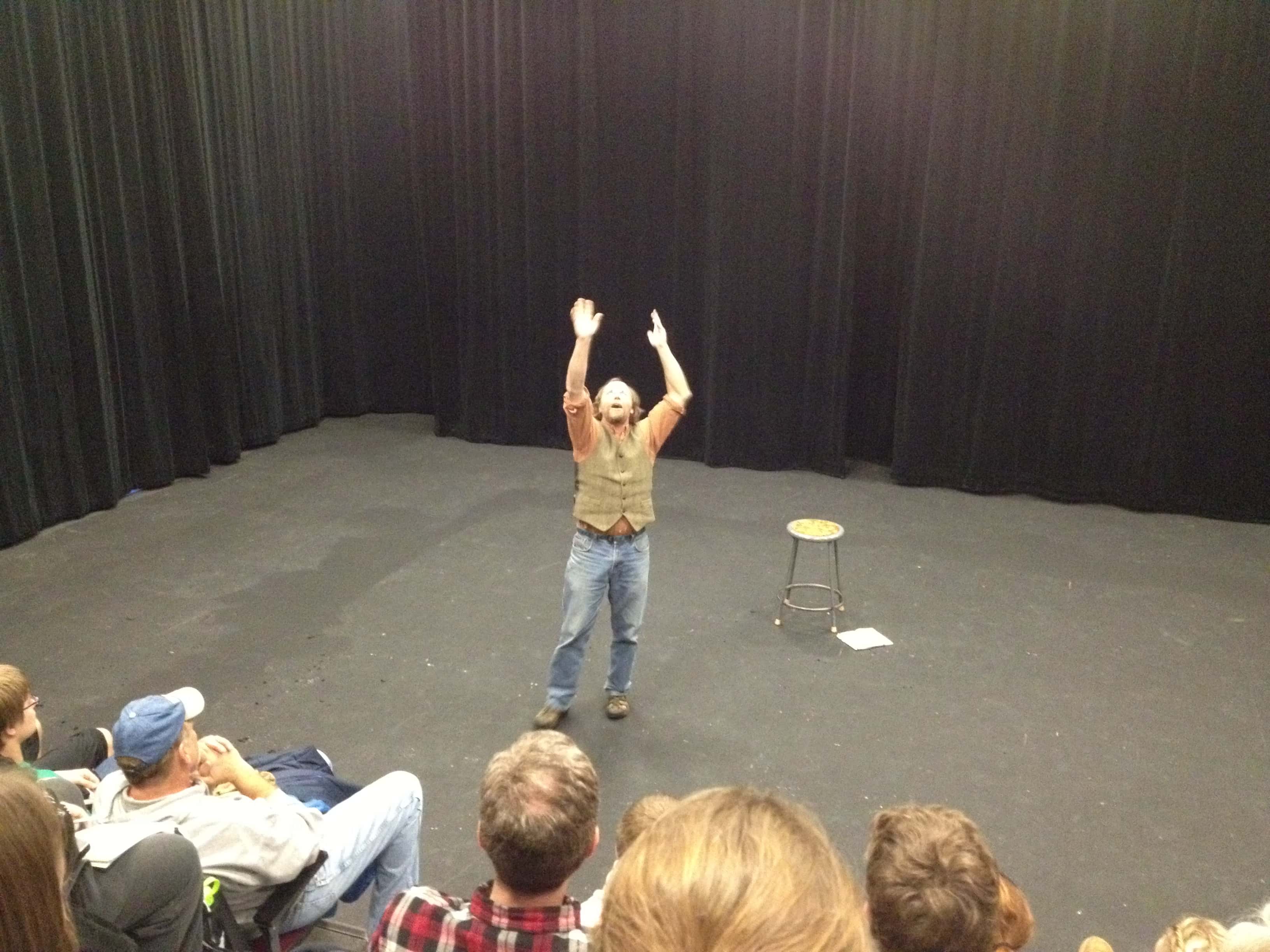 A master storyteller presented a class on the art of storytelling last night. Kent Busman is the director of the Fowler Camp and Retreat Center in New York, and also an ordained minister. He told stories ranging from improved audience participation stories, to old fables, to memorized lyric stories. He also talked to the audience about the craft of telling a story, and about how to perform those stories to a group. After the presentation theater students from Central College held a question and answer session.