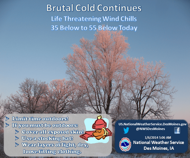 The extreme cold we are seeing this winter is forecast to last awhile, says WeatherEye Meteorologist Greg Tatro. He says the northern parts of Canada didn’t really warm up this past summer, and that arctic air is pushing southward, affecting us here in Marion County with colder than normal temperatures very likely for us all winter. He says temps should continue to recover Tuesday and we’ll be back in the 20s by Wednesday. The National Weather Service has issued a wind chill warning for Marion county, effective until noon on Tuesday. Bitterly cold air temperatures will settle in and wind chills are forecast to be between 40 and 50 below zero today.