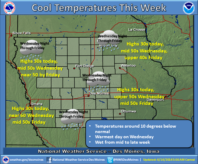 Knoxville received 2.84 inches of rain yesterday. A flash flood watch was temporarily in effect for Marion County and surrounding areas. Creeks and rivers rose, and English Creek, south of Knoxville was approaching flood stage Monday morning, rising almost 9 feet in 24 hours. The much needed moisture brought with it cooler temperatures also, and according to the National Weather Service, the upper Midwest will be under the influence of a Northwest flow which will keep cool temperatures in place across Iowa. A low pressure system will pull warmer air across the state on Wednesday but that will be short lived as an upper level trough of low pressure drives the low east and allows colder air to move back in. The combination of the surface low and the upper level system moving slowly to the East will keep precipitation chances in Iowa from Wednesday night through Friday.