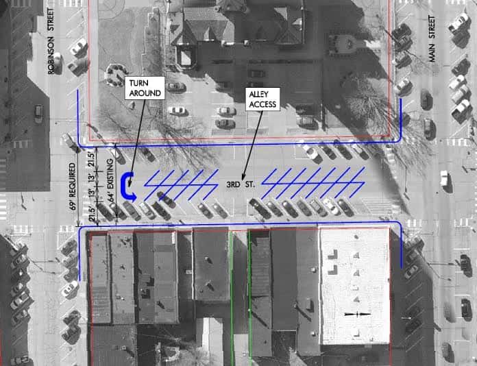 As Streetscape work continues, parking along Knoxville’s square can be tricky. City Manager Harold Stewart tells KNIA KRLS News that recently, a business-owner proposed center-street parking, in which cars would park in the center of the street, creating a cul-de-sac type of drive on affected streets. The City Council elected to keep parking as it is, for a number of reasons. Concerns included the ongoing need for access by large construction equipment both for Streetscape and the clocktower restoration project and for the safety of pedestrians. Another concern was that the current parking stripes would need to be removed, then painted in the center; and all for a temporary fix.