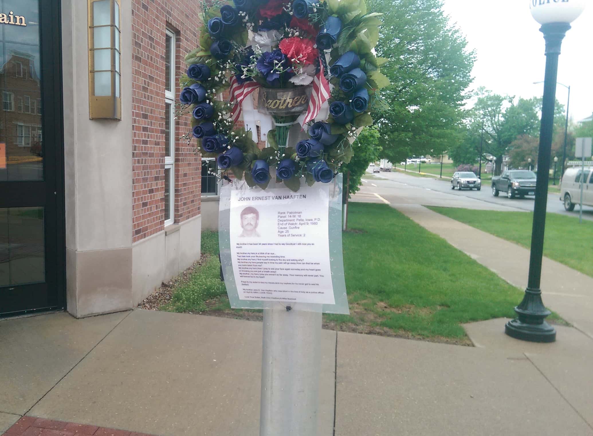 Officers across Marion County are remembering those who have fallen in the line of duty. Two officers in Marion County died during attempted arrests. Marion County Deputy Harold Gates in November 1967. He was handling a domestic case when an assailant opened fire on officers with a high powered rifle. Pella Police Officer John E. Van Haaften died during a drug investigation in Knoxville in April 9th, 1980. Pella Police Chief Robert Bokinsky says a memorial wreath for Van Haaften has been on the flagpole next to his plaque at the police station since Tulip Time. One officer passed away in June of 2008. Transport Officer Virgil Behrens died after injuries sustained in an automobile accident on his way to training in Des Moines.