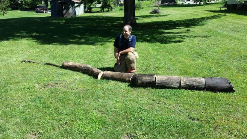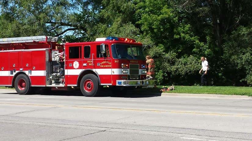 Knoxville City Streets crews and Knoxville Fire and Rescue were on the scene Tuesday morning, trying to clear a blockage in the storm drain that resulted in significant standing water during this past Saturday’s storms. Public Works Supervisor Dennis Webb tells KNIA KRLS News that a log, approximately 15 feet long, was wedged in a bend in a drain located just east of the VFW on the north side of Jefferson Street. It was blocking debris from flowing through the drain. Knoxville Fire Chief Jim Mitchell was on scene as well, while firefighter Ben Truetken descended into the manhole and removed the log with a chainsaw. The fire crew flushed the drain from the west side of Lincoln Street, using the fire hose from the engine, and found a broken steel grate that is in need of repair. Webb says this will be addressed with the City.