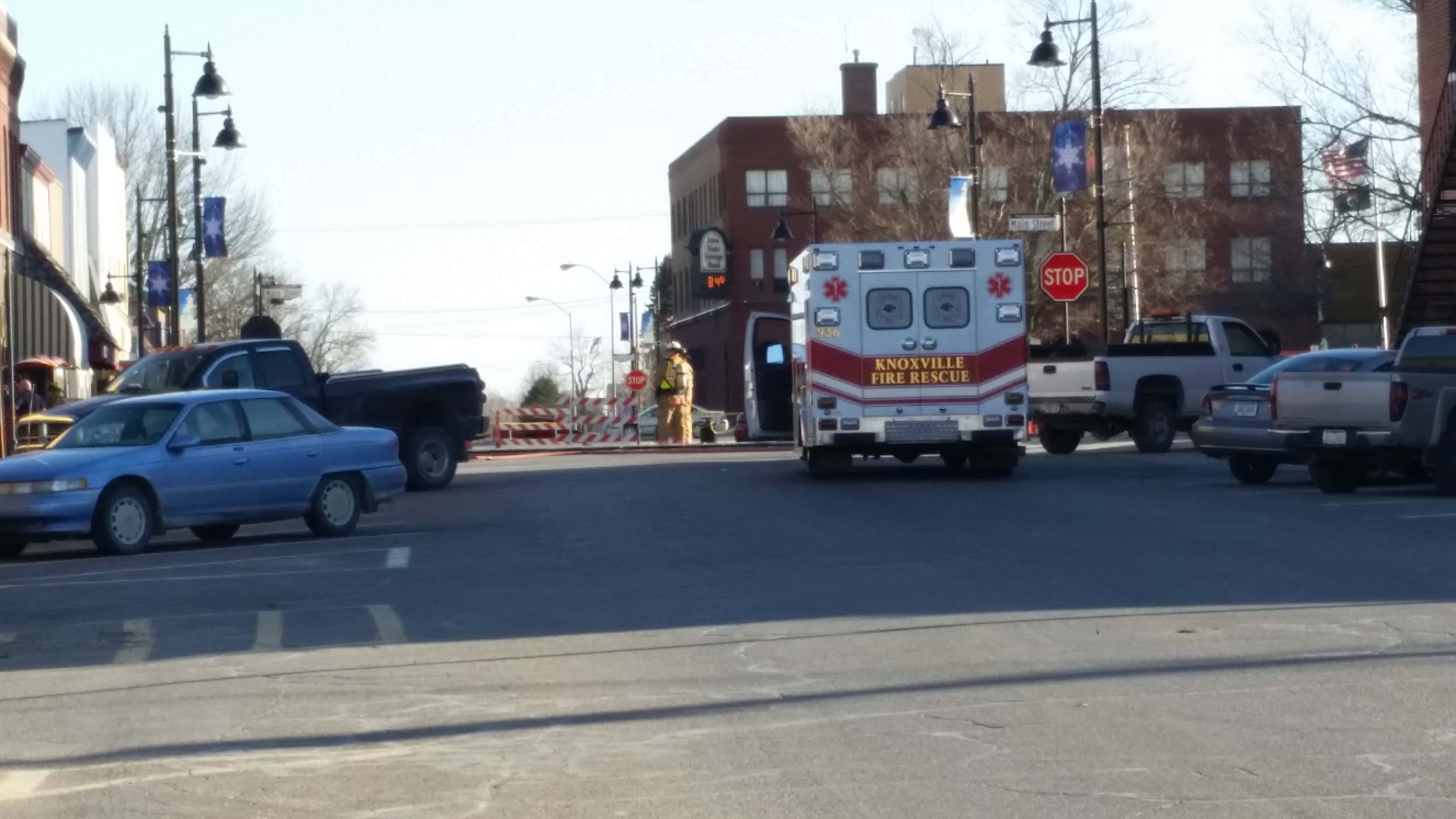 Knoxville City Fire Chief Jim Mitchell says buildings were evacuated on the east and north side of the square. There were no reports of injuries.