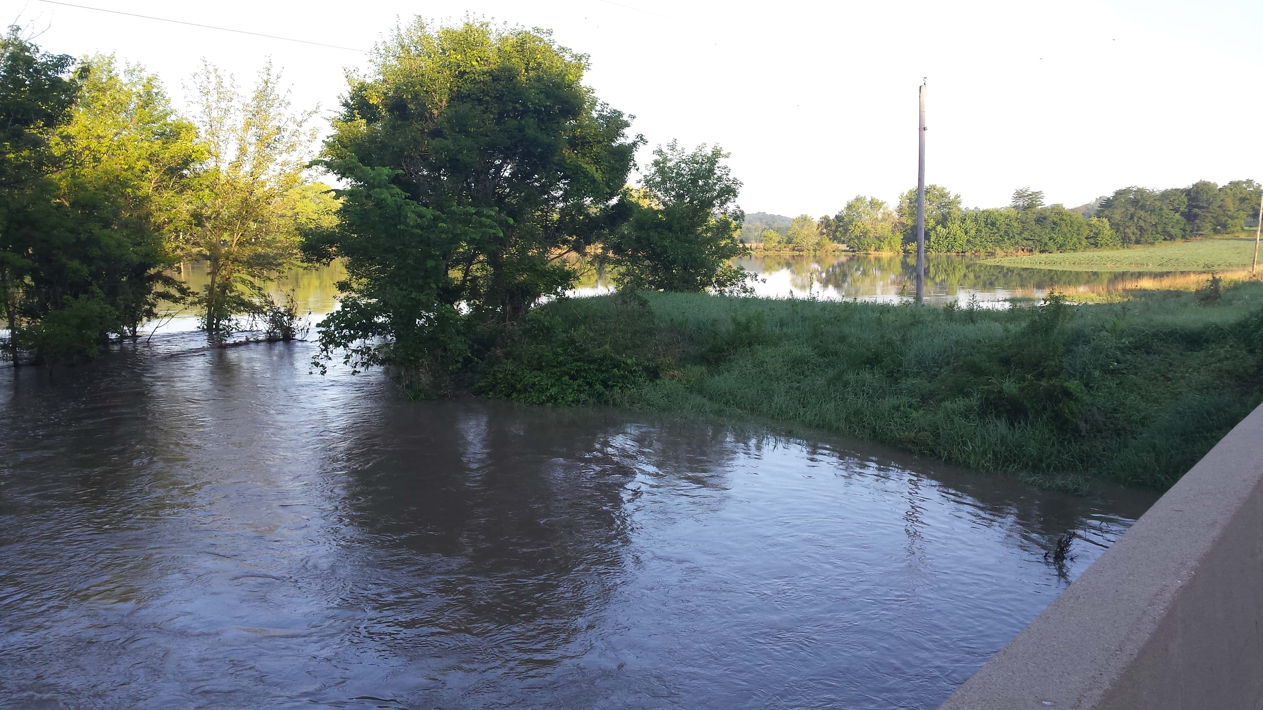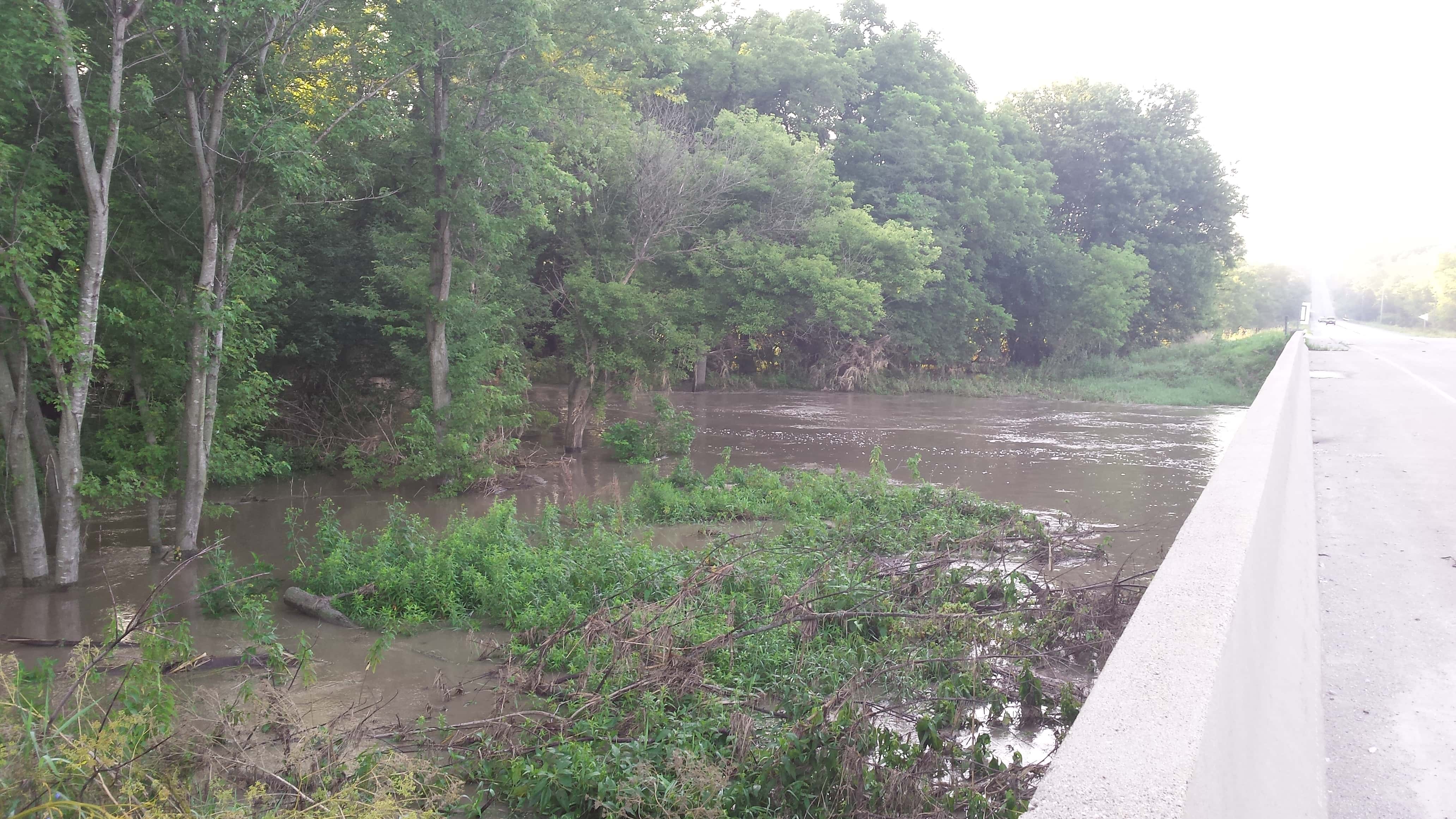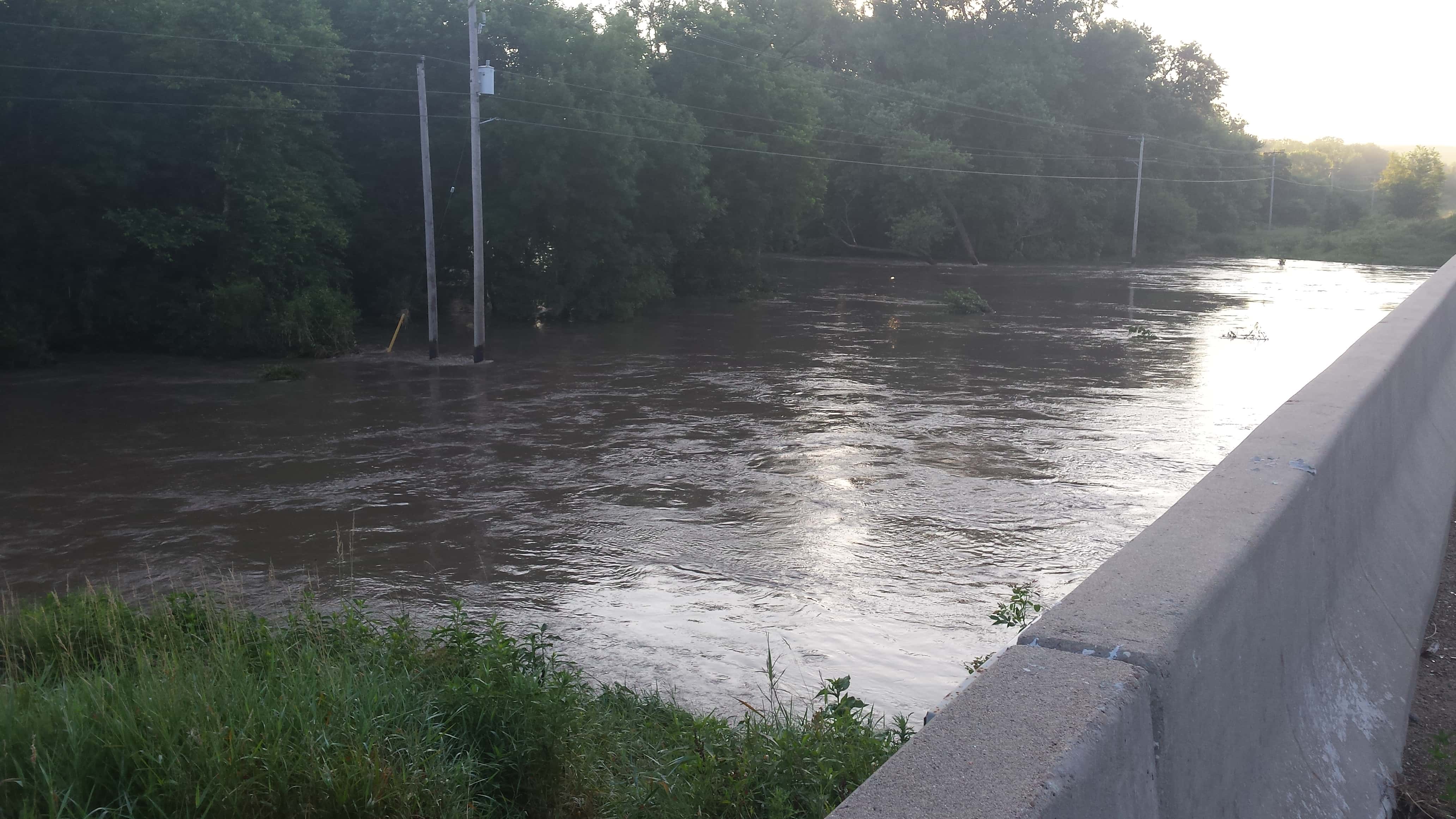 Two area streams remained over their banks this morning following heavy rain early Thursday. These photos are from Cedar and English Creeks. The English topped its banks late Thursday morning, and continued to rise through the afternoon and evening hours. County crews are currently surveying damage in the southern part of the county.