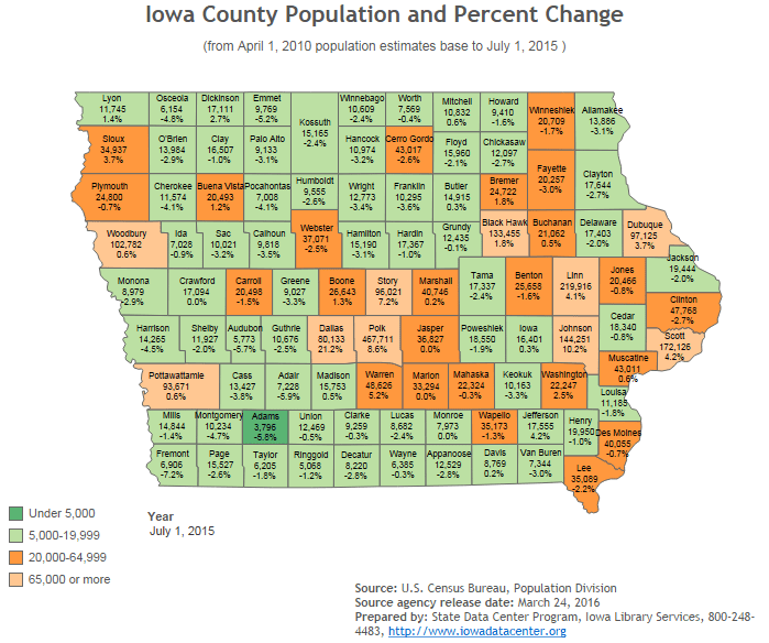 According to the latest census numbers from the Iowa State Data Center, 33,294 residents live in the 22nd largest county in Iowa, down 15 residents from 2010 estimates.
