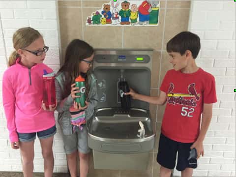 Pella Christian Grade School received a $2000 grant funded through the annual Earth Day e-Cycling event to purchase a water fountain and water bottle refilling station.
