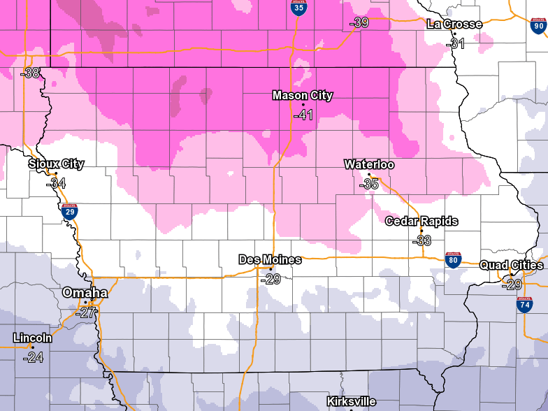 Windchill values of 32 degrees below zero were observed in Knoxville and 31 below was recorded in Pella Sunday morning. Countywide, 1-2” of snow fell Saturday, which caused visibility issues as winds topped out near 30 MPH. A warm up is expected this week, with high temperatures above freezing expected beginning Tuesday and remaining in place through Christmas Eve.