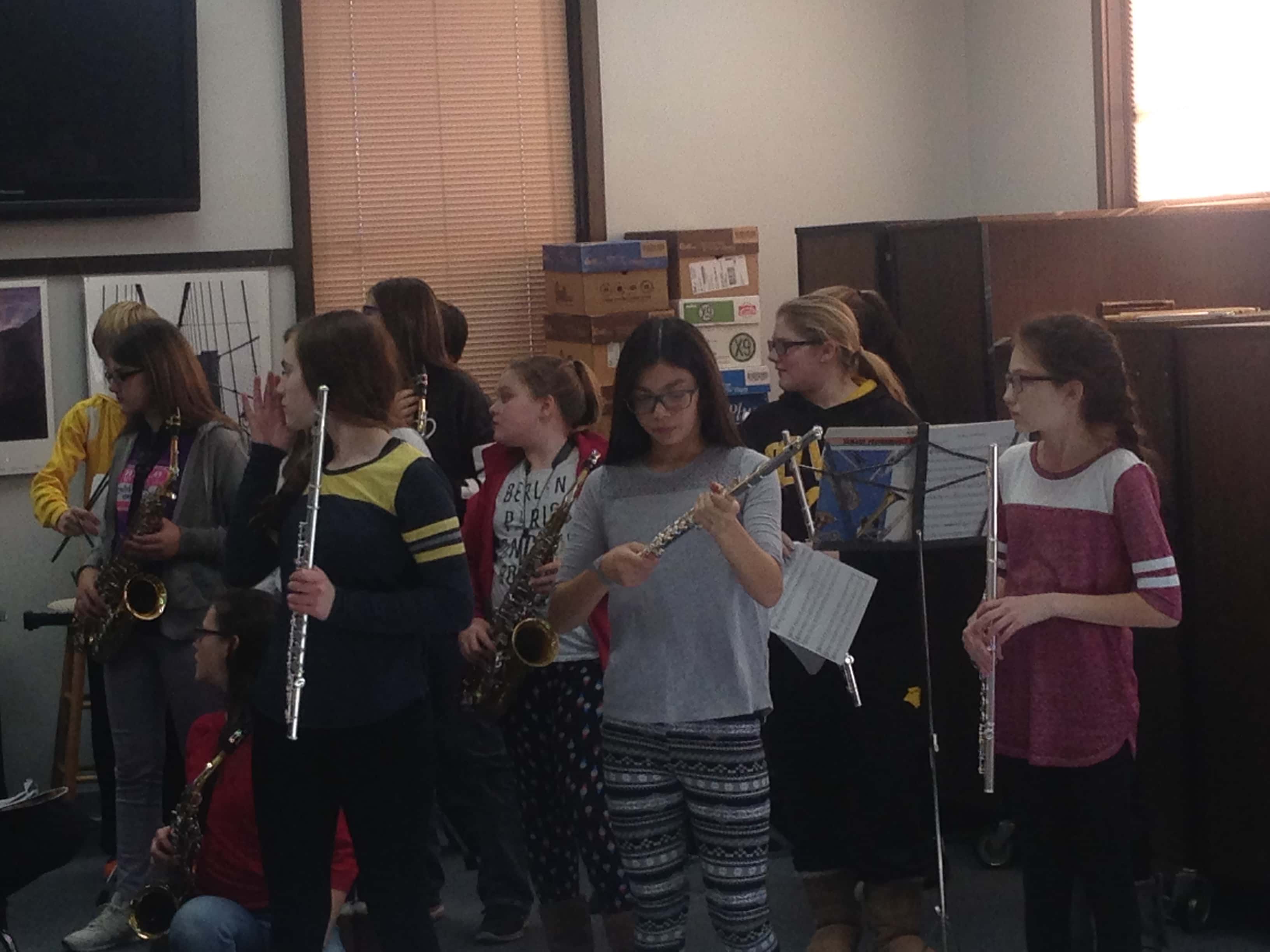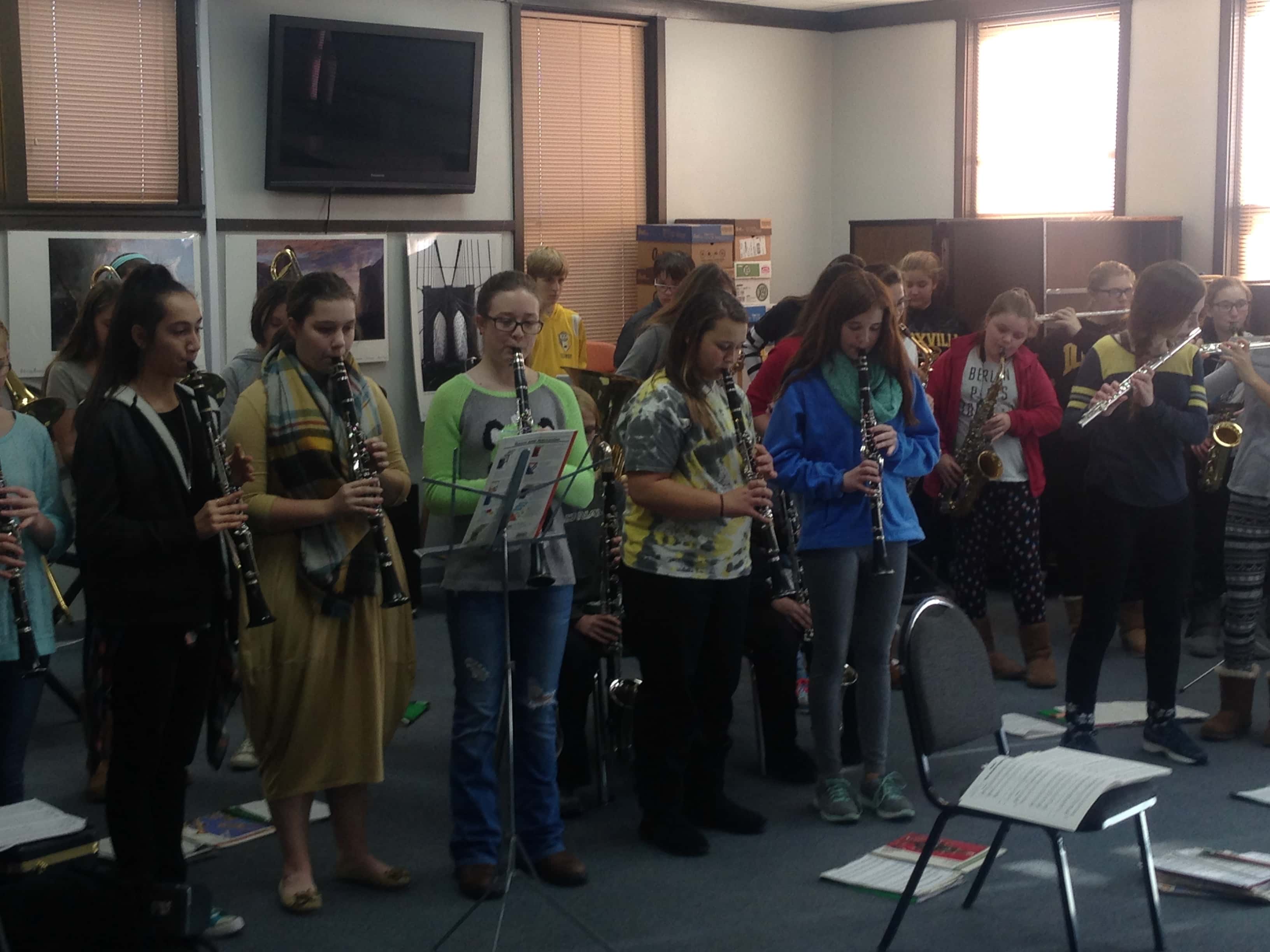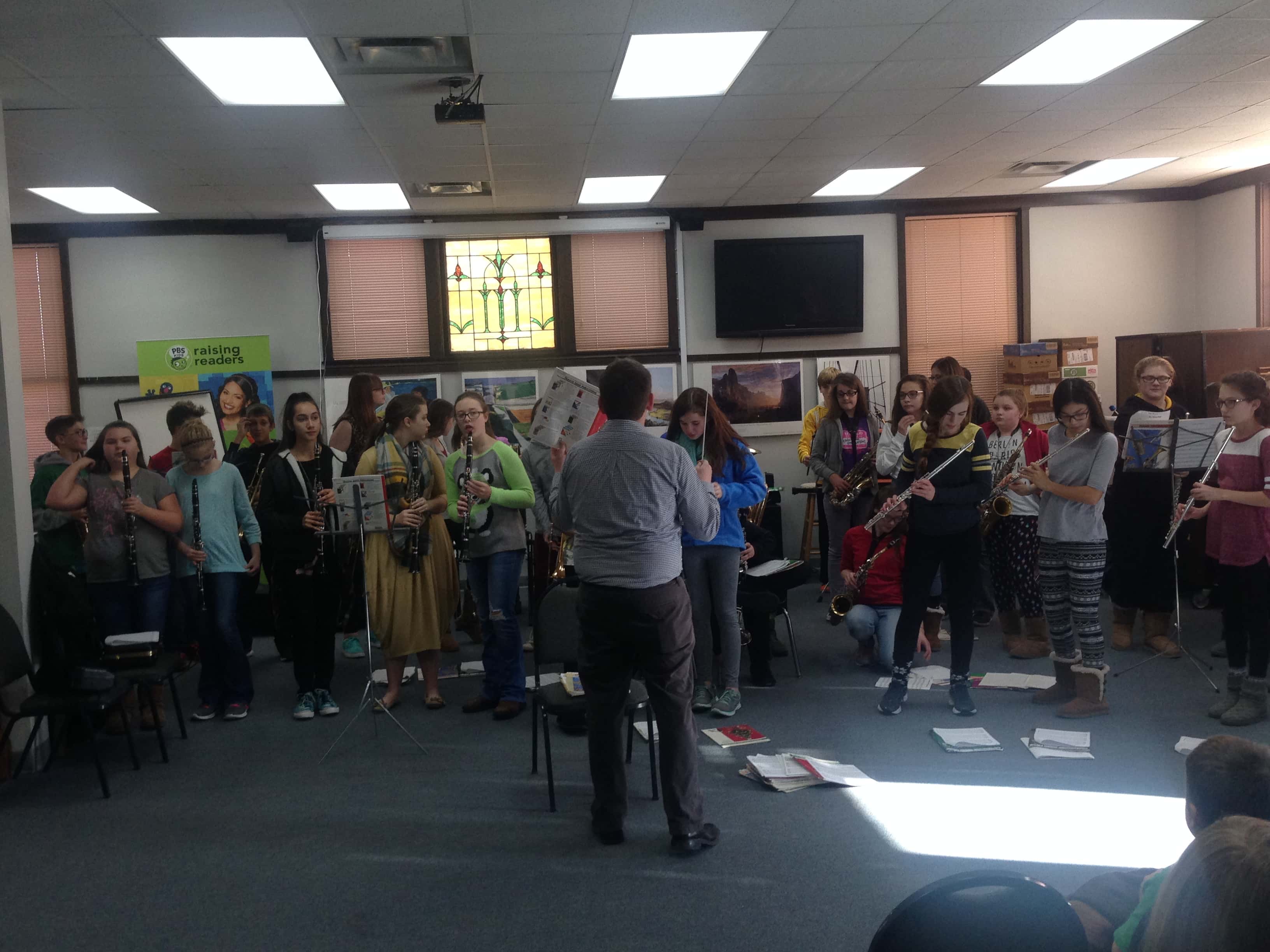 The holiday music concert in the library meeting room is a way of thanking the library for some of the instruments the band uses, which are provided on loan to children. The instruments might otherwise be prohibitively expensive. The band played a selection of Christmas favorites for a crowd of about 25.