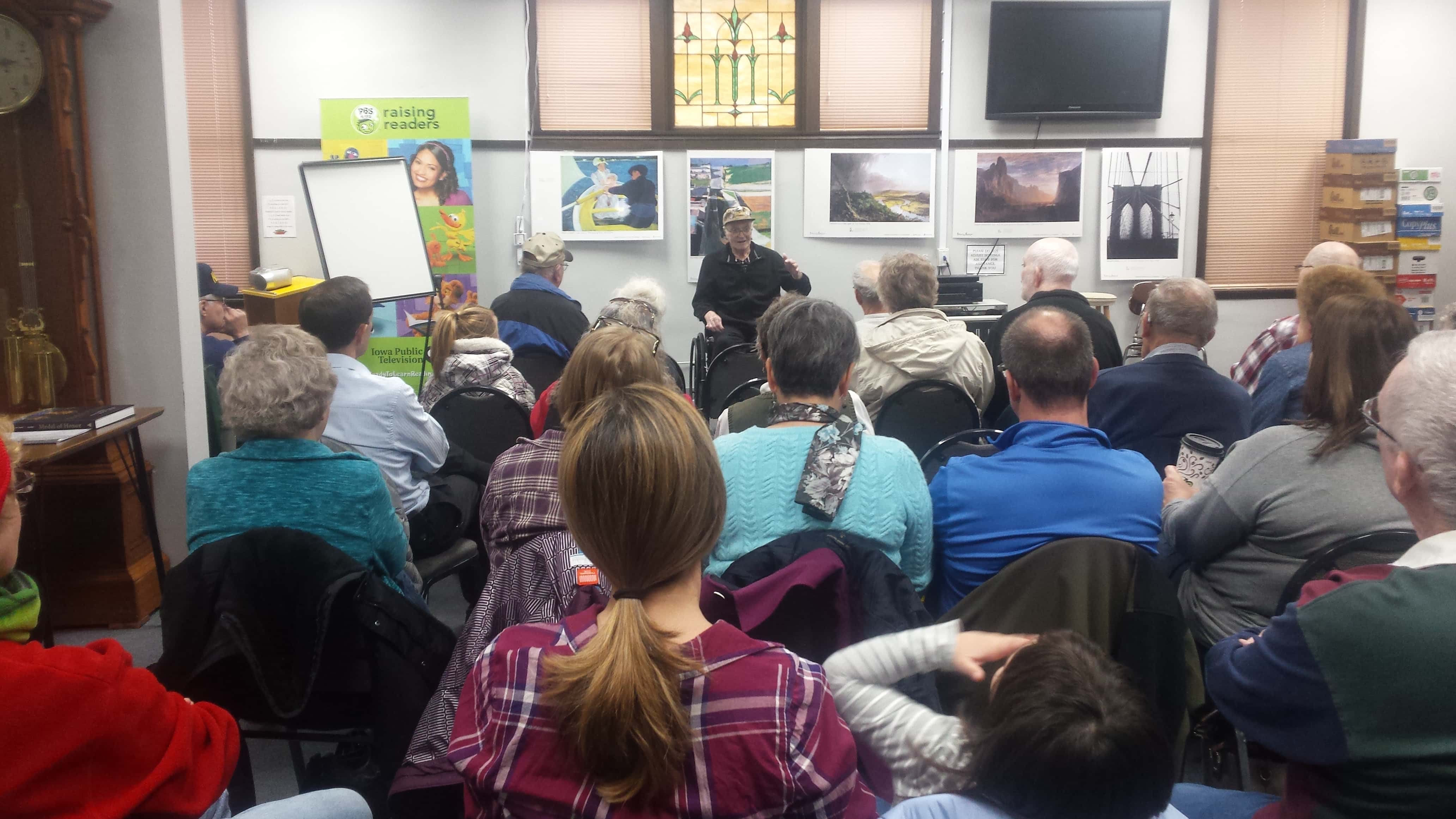 Walter is the oldest living POW in Marion County and told stories about being shot down over Germany in World War 2, his time in a prison camp and his return home. Walter has been interviewed by the Veteran’s History Project at the Library of Congress. A crowd of more than 40 attended the program.