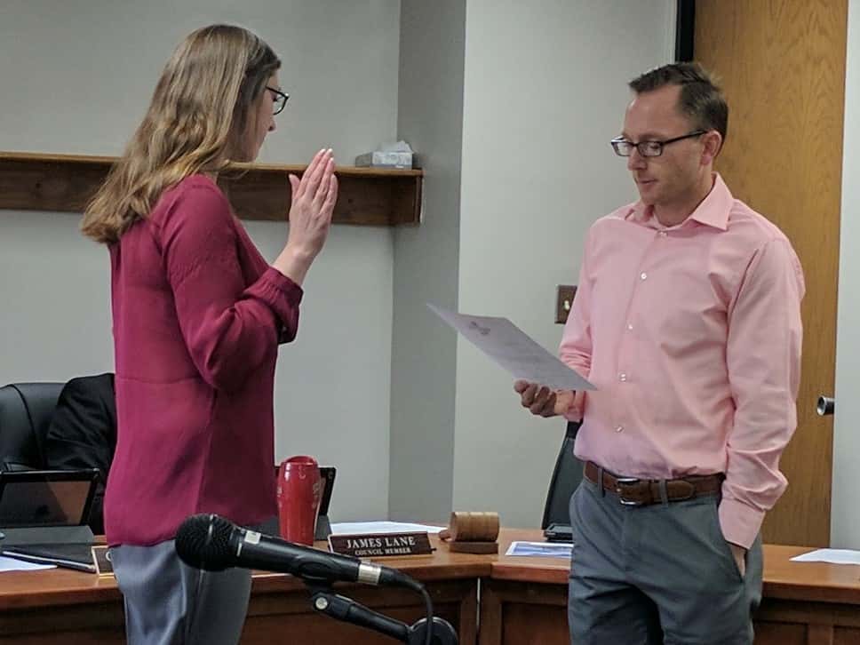 The council started the meeting with approving Megan Suhr to the vacant city council position in a 3 to 1 vote with council member Rick Kingery voting no. Kingery had supported Suhr’s candidacy in a final vote at a previous work session regarding the open position. Following the approval vote, Suhr was sworn in by Mayor Brian Hatch.