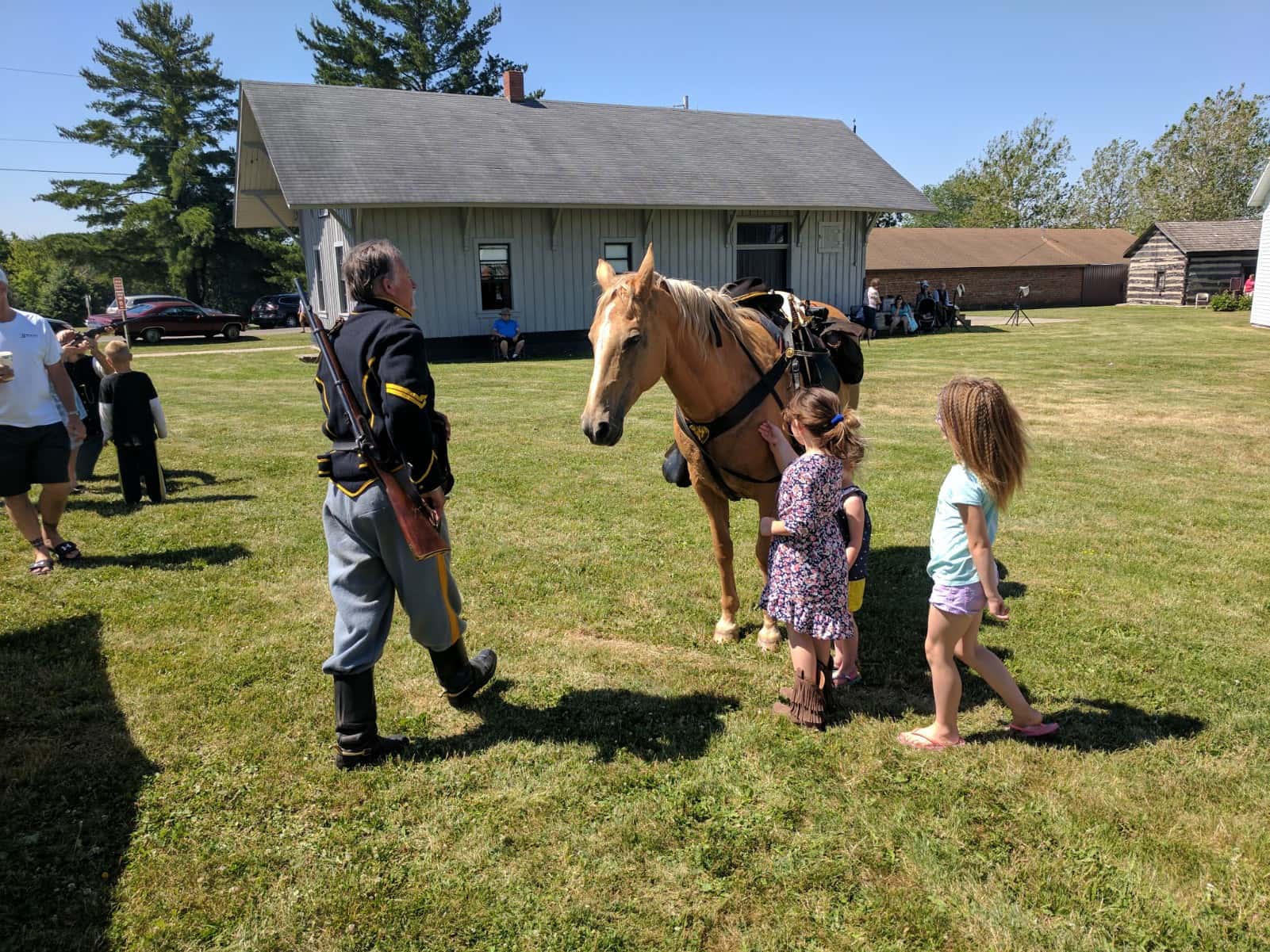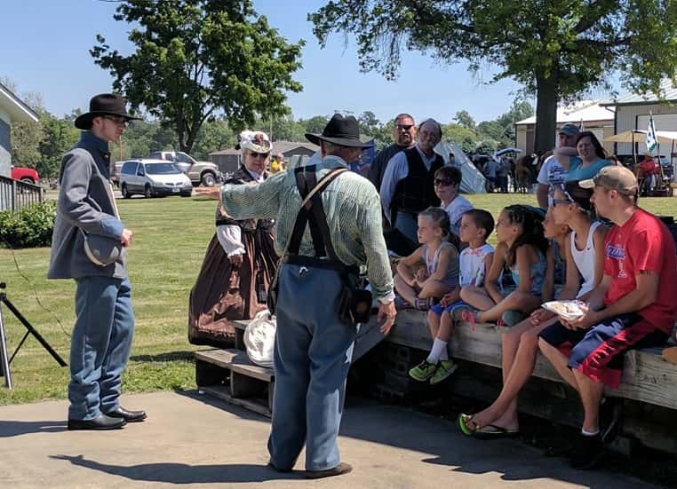 The event began with a flag raising followed by Civil War era camp drills, a fashion show, skirmishes, as well as multiple vendors. The event was sponsored by the Marion County Historical Society which held tours of the buildings with members dressed in proper era clothing explaining life in the 1800’s. The “Salute to Freedom” also featured a bake sale in the General Store and Doug Wilson who conducted a program on Marion County Coal Mining in the Schoolhouse. The Lions Club also held a pancake and sausage breakfast during the event.