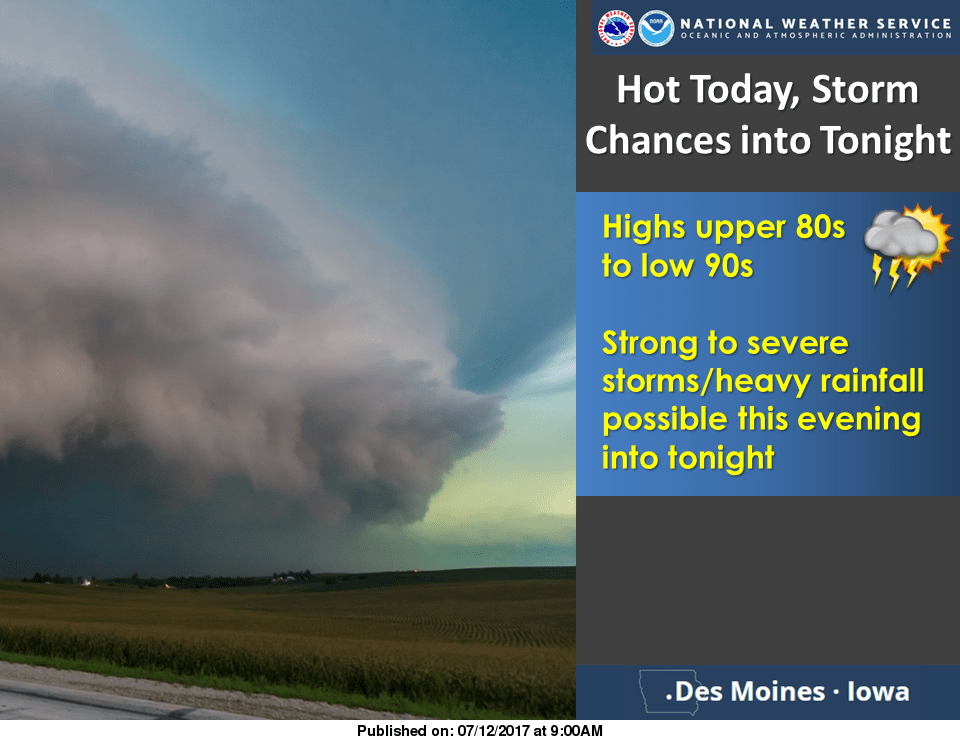 Hot, humid weather this afternoon may lead to the development of strong storms and heavy rain in much of South Central Iowa.