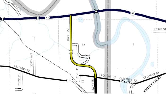 Highway T25 north of Tracy will be reduced to one lane from Highway 92 to Old Highway 92 for concrete patching.