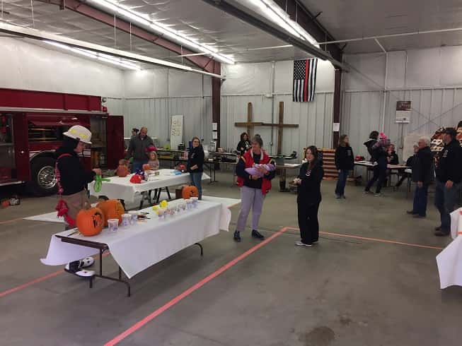 A free will donation chili soup and potato soup dinner was served during the event, with drinks and desserts served by the Knoxville Hy-Vee. Families who attend the event were treated to free kids activities including Smitty’s Inflatables, pumpkin painting, fire truck tours, rope making and kids water wars. Door prizes were handed out and a silent auction was also held. All proceeds of Saturday’s event will go towards the purchase of new breathing apparatuses and bunker gear. The KNIA/KRLS Big Red Radio was at the event playing music and making announcements.
