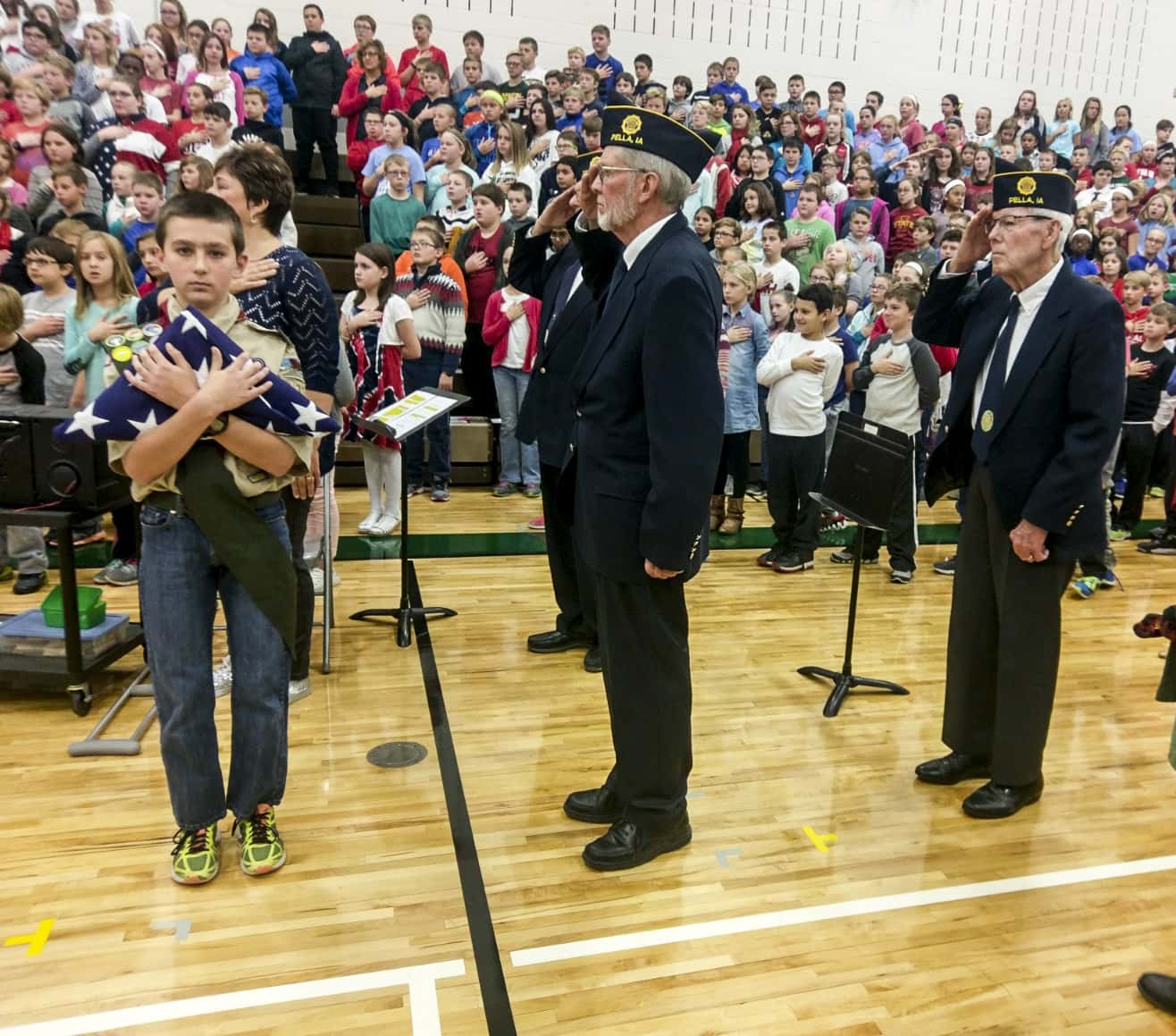 Jefferson Intermediate held their annual celebration of all who have served with a program that included students singing, reading essays and learning how to fold the flag from American Legion Post 89.