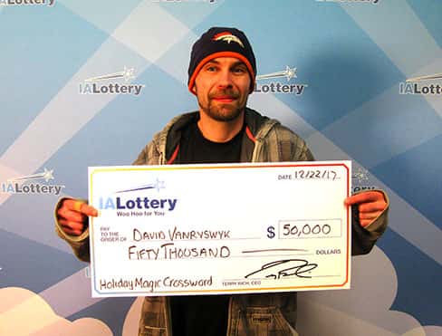 David Vanryswyk claimed the 10th of 12 top prizes of $50,000 available in the Iowa Lottery’s “$50,000 Holiday Magic Crossword” scratch game.