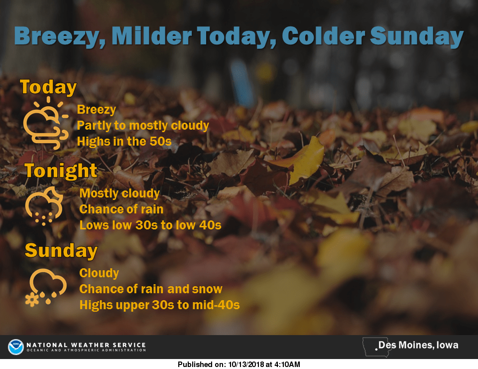 Daytime highs on Sunday are only expected to just top 40 degrees. That mark of 40 is the record for Marion County, set in 1937, for the coldest October 14th. Overnight Sunday into Monday, a hard freeze is expected, with lows dipping into the upper 20s. Stay tuned to KNIA/KRLS for the latest weather information.