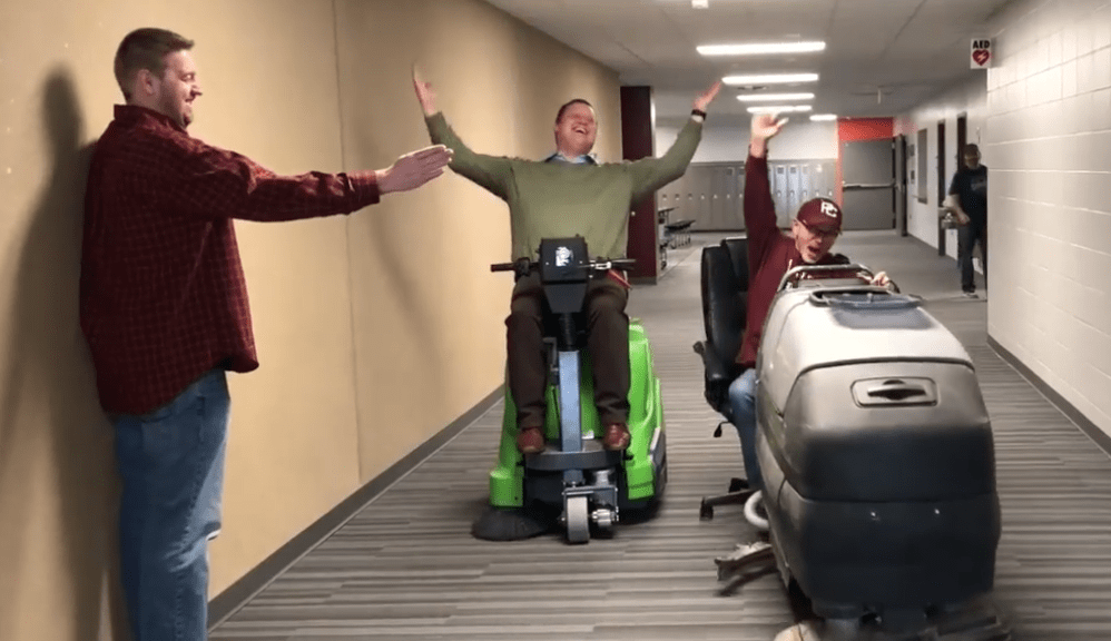 Pella Christian principals Dan Van Kooten and David Te Grotenhuis were joined by their respective vice principals Greg Wojczynski and Craig Juffer to put together a video of the various activities they do when school is out and they are stuck at the buildings while classes were cancelled Tuesday.