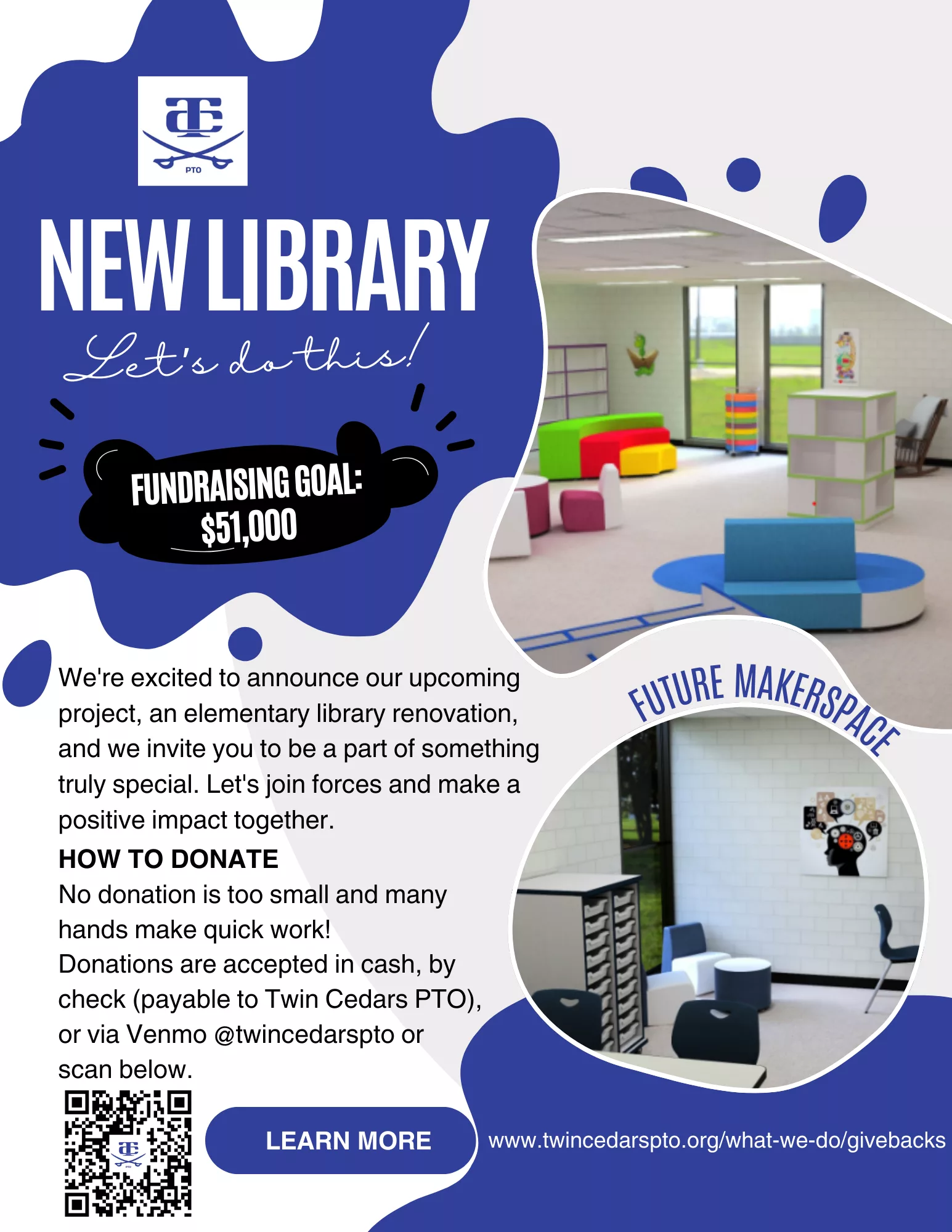 The Twin Cedars Schools PTO is hosting two fundraising events in an effort to help support the renovation of the elementary school library.