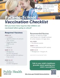 The Marion County Public Health Department is reminding local families of a back to school vaccination checklist.