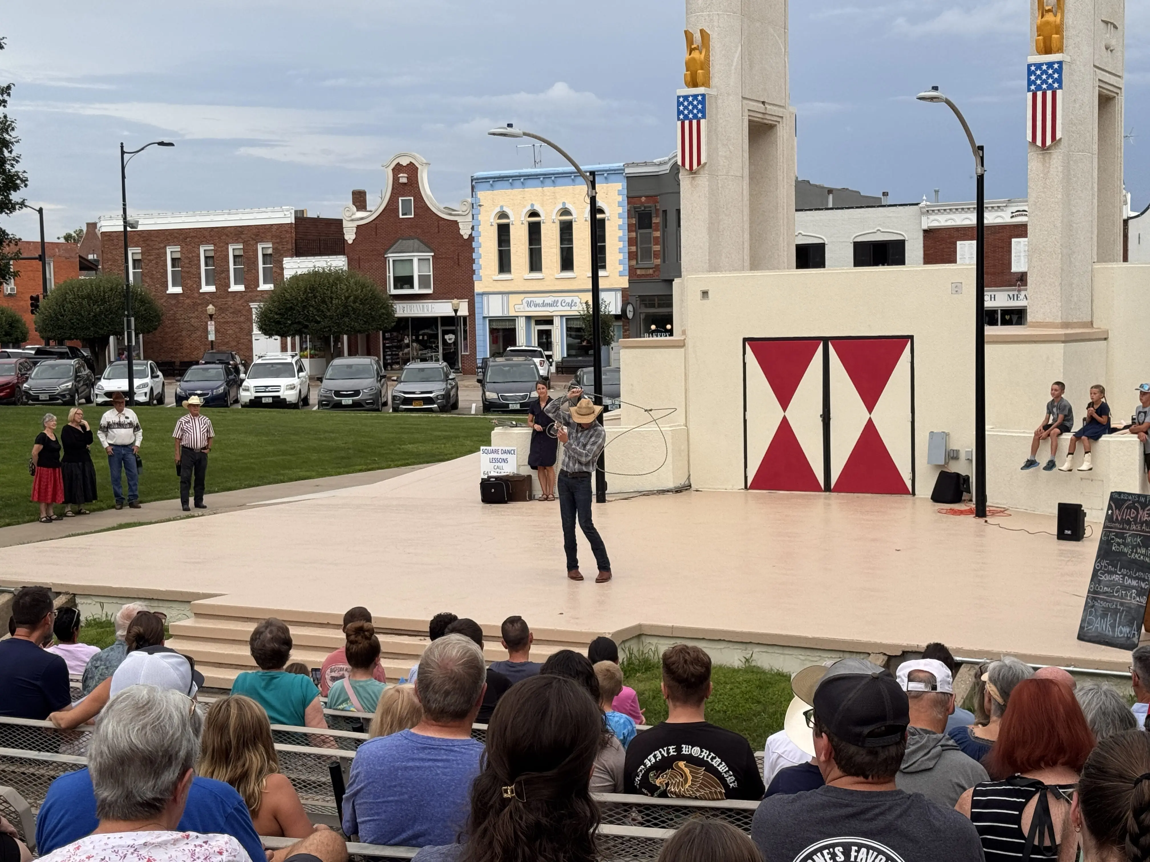 The theme of this week’s Thursdays in Pella festivities was “Wild West.” Activities included panning for gold, roping and hat making, meeting the mini herd with Grace Therapeutic, and more. A trick roper demonstration and square dancing also took place on the Tulip Toren ahead of the City Band performance. The KNIA/KRLS Lil’ Big Red Radio is broadcasting weekly from Thursdays in Pella.