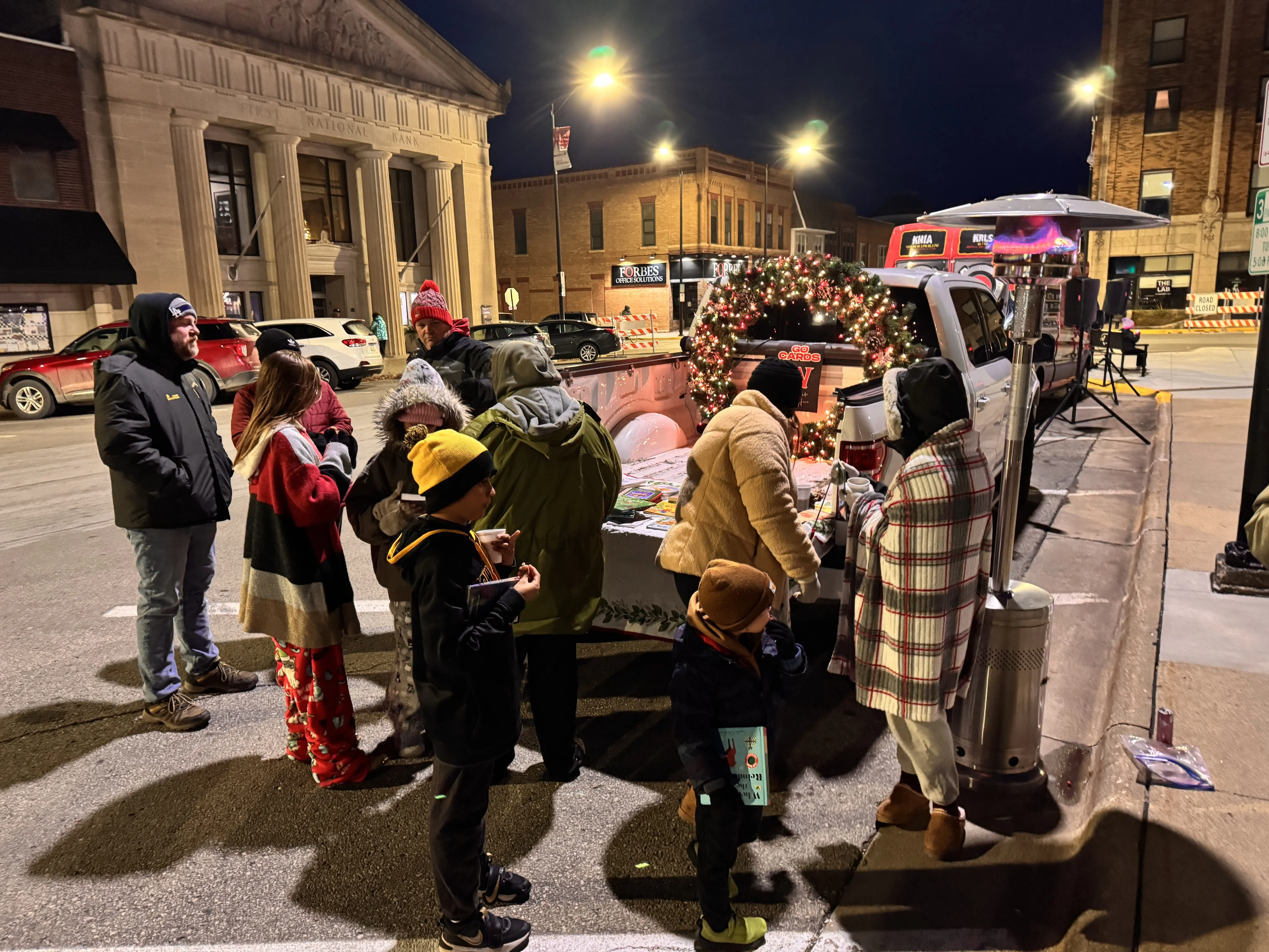 Christmas lights on the Jasper County Courthouse in downtown Newton were turned on for the first time at 6 pm, and was followed by the lighted Christmas parade. Children in attendance were able to visit with Santa in his workshop in the courthouse, and a variety of vendors were set up around the square. Executive Director of the Greater Newton Area Chamber of Commerce KayLea Marchant said that she was grateful for the community turnout in spite of the cold temperatures and snow.