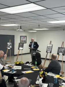 The festivities included a luncheon at Noon at the National Sprint Car Hall of Fame, where the new hall of fame class was honored. The hall of fame inductees spoke at the lunch, and a large number of community members, alumni, and other hall of fame members attended. The inductees were then honored in between the girls and boys varsity basketball games on Friday night. This year’s hall of fame class included Howard Elliot from the Class of 1969, Heidi Higgenbotham from the Class of 1993, Coach Joel Johnson, and the 1987 Boys Track and Field Team.