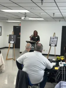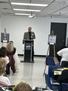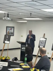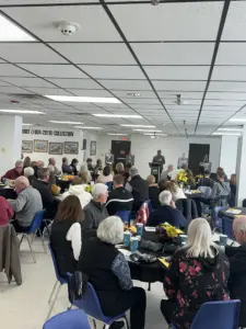 The festivities included a luncheon at Noon at the National Sprint Car Hall of Fame, where the new hall of fame class was honored. The hall of fame inductees spoke at the lunch, and a large number of community members, alumni, and other hall of fame members attended. The inductees were then honored in between the girls and boys varsity basketball games on Friday night. This year’s hall of fame class included Howard Elliot from the Class of 1969, Heidi Higgenbotham from the Class of 1993, Coach Joel Johnson, and the 1987 Boys Track and Field Team.