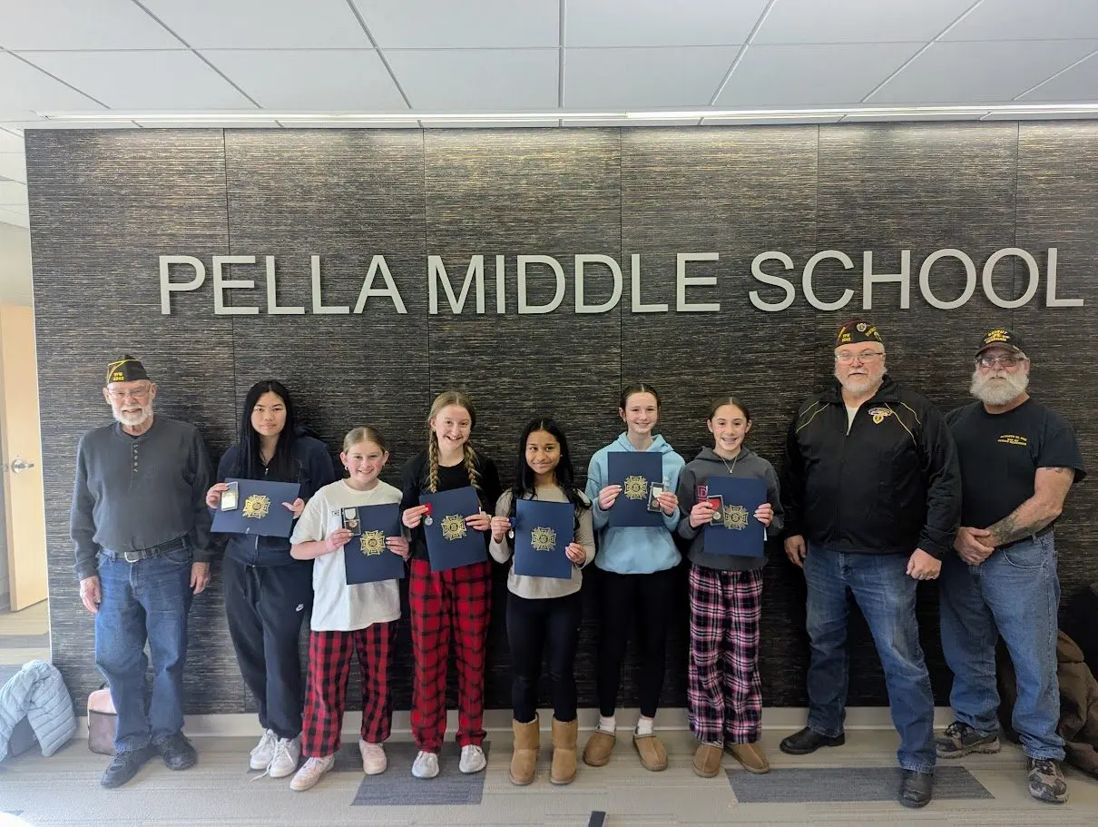 Pella Middle School students received recognition for writing essays through local VFW Patriot’s Pen contests.