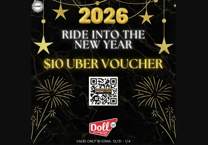 Doll Distributing is offering $10 Uber vouchers to encourage Iowans to plan ahead and make safe choices during New Years. Learn more below:
