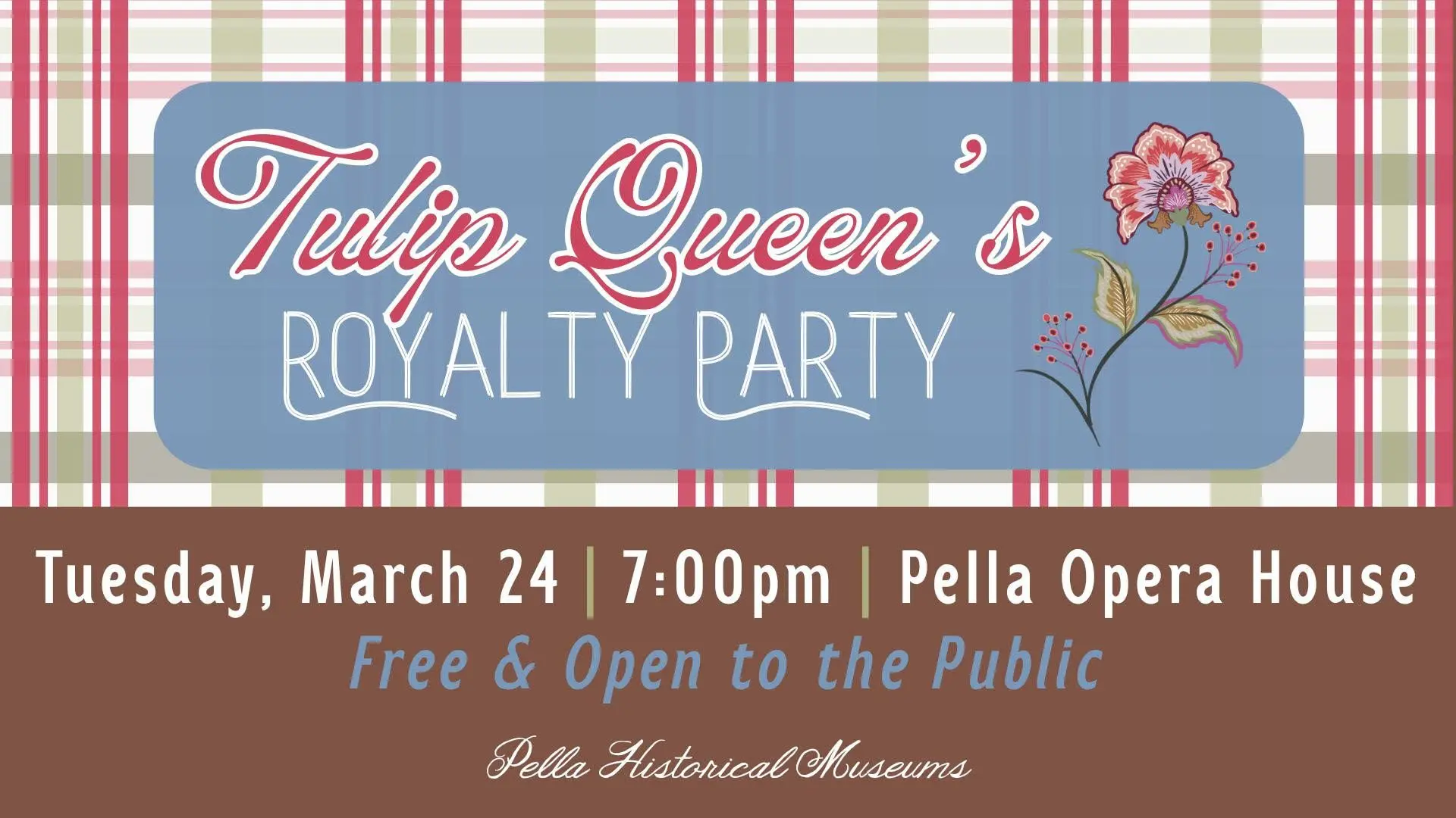 You’re invited to the Tulip Queen’s Announcement Party, where the 2026 Tulip Court will present their program for the first time on Tuesday March 24th at the Pella Opera House. This is an opportunity to meet the Court as well as enjoy a performance by the Dutchesses. This event is free and open to the public.