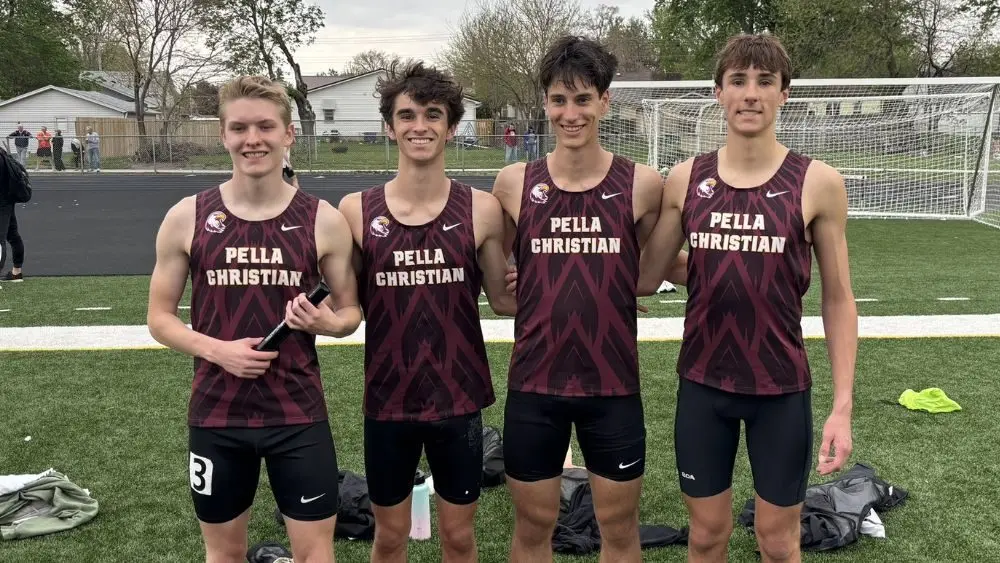The Eagle boys posted a team score of 21 on the night, while the girls had 24.5 team points. Pella Christian posted six top-five finishes on the night, led by the girls sprint medley relay team of Lexi Terpstra, Amaia Agre, Rachel Kacmarynski, and Maisy Meinders posting an event winning time of 1:52.10. Will Vanden Bosch added a second place finish in the 3200m run (9:47.04), while Olivia De Haan took third in the long jump (15’ 6”). The boys 4x800m relay team of Griffin Stoltz, Logan Gallaher, Hudson Meixner, and Sawyer Meinders broke a 16 year old school record with a time of 8:09.43 to take third place in the event. Other top five finishes for Pella Christian came from the girls distance medley relay team of Abby De Vries, Ashlyn Ver Meer, Chloe Vos, and Greta Vos in fourth place (4:49.80), and the boys 4x200m relay team of Lucas Dolezal, Elijah Boender, Camden Huyser, and Anton Boender taking fifth (1:39.46).